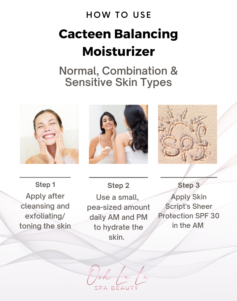 Skin Script Cacteen Balancing Moisturizer comes in a container of 1.7 ounces. This product contains ingredients with healing properties, and it helps to restore balance and beauty to the skin.